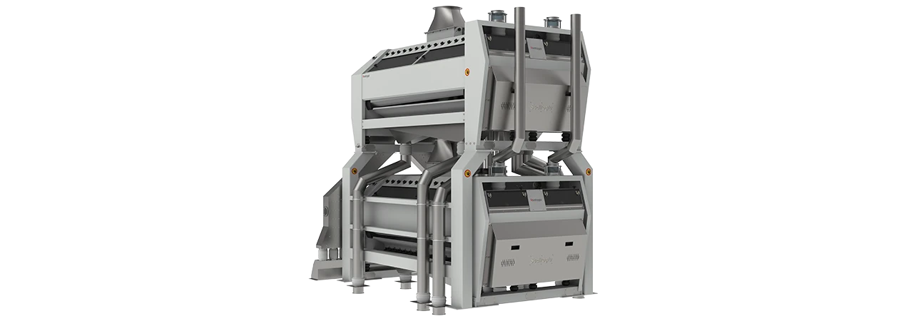 Double Deck Semolina Purifiers by Sediroglu Group are advanced classification machines designed for modern flour mills, semolina production lines, and pasta factories. Featuring a space-saving double deck structure, these machines integrate two independent purification systems within a single unit. Dual product inlets ensure balanced material distribution, while optimized airflow systems efficiently remove bran, dust, and husk. This design provides high capacity, consistent product quality, and reliable performance in industrial grain processing operations.