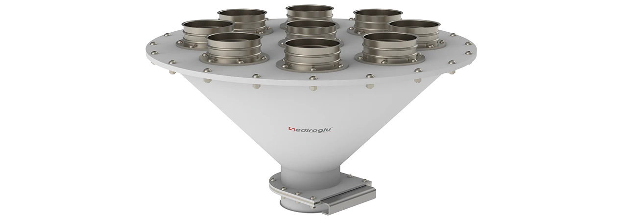 Multi Inlet Bunker systems by SEDIROGLU GROUP are designed to collect material from multiple bin outlets and discharge it through a single outlet with uniform flow. These systems prevent segregation, ensure homogeneous product movement, and improve process stability. They maximize bin capacity utilization and support consistent, efficient operation in grain and food processing plants.