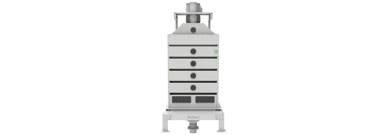 The Vertical Vibro Tarar by Sediroglu Group Machine is engineered to deliver high-efficiency separation of light impurities and fine dust from grains in flour mills and similar grain processing facilities. Through the use of vertical vibration and controlled airflow, this machine ensures precise cleaning, contributing to improved product purity and system performance.